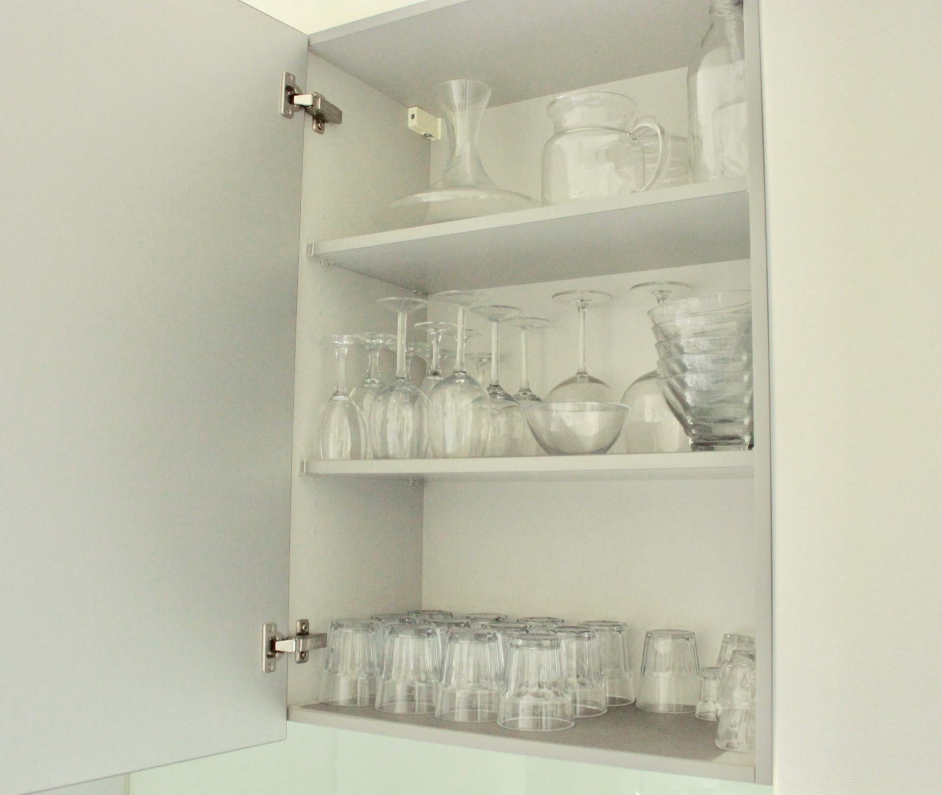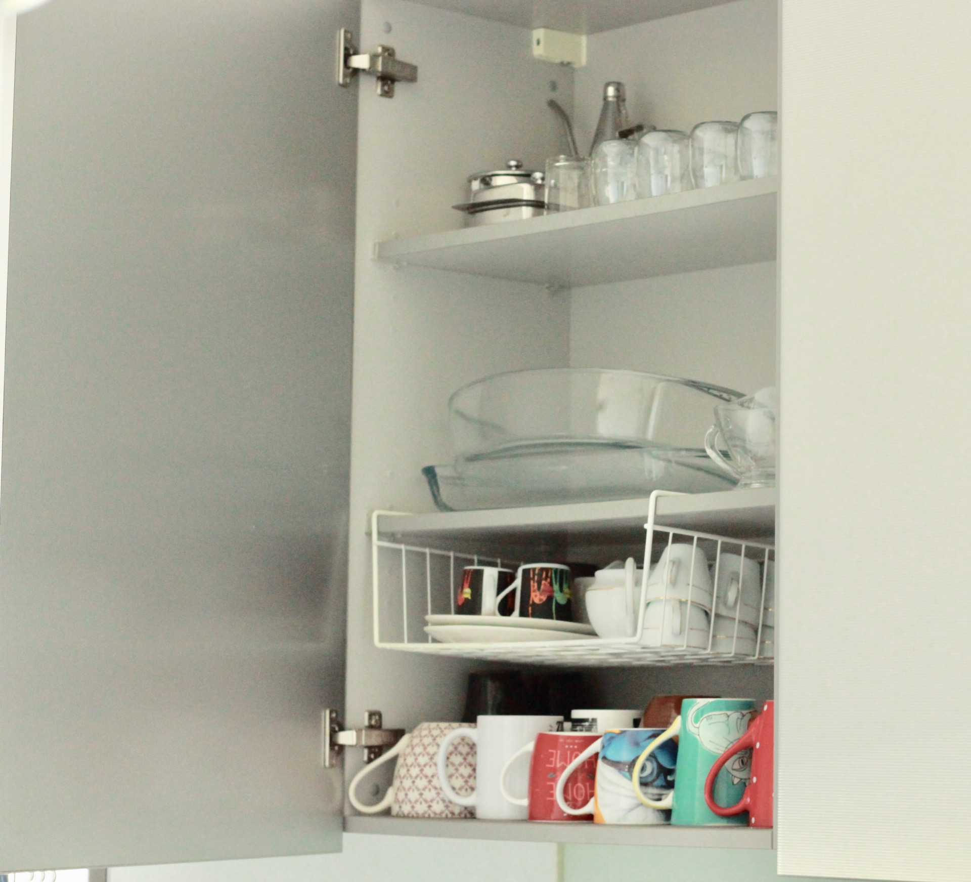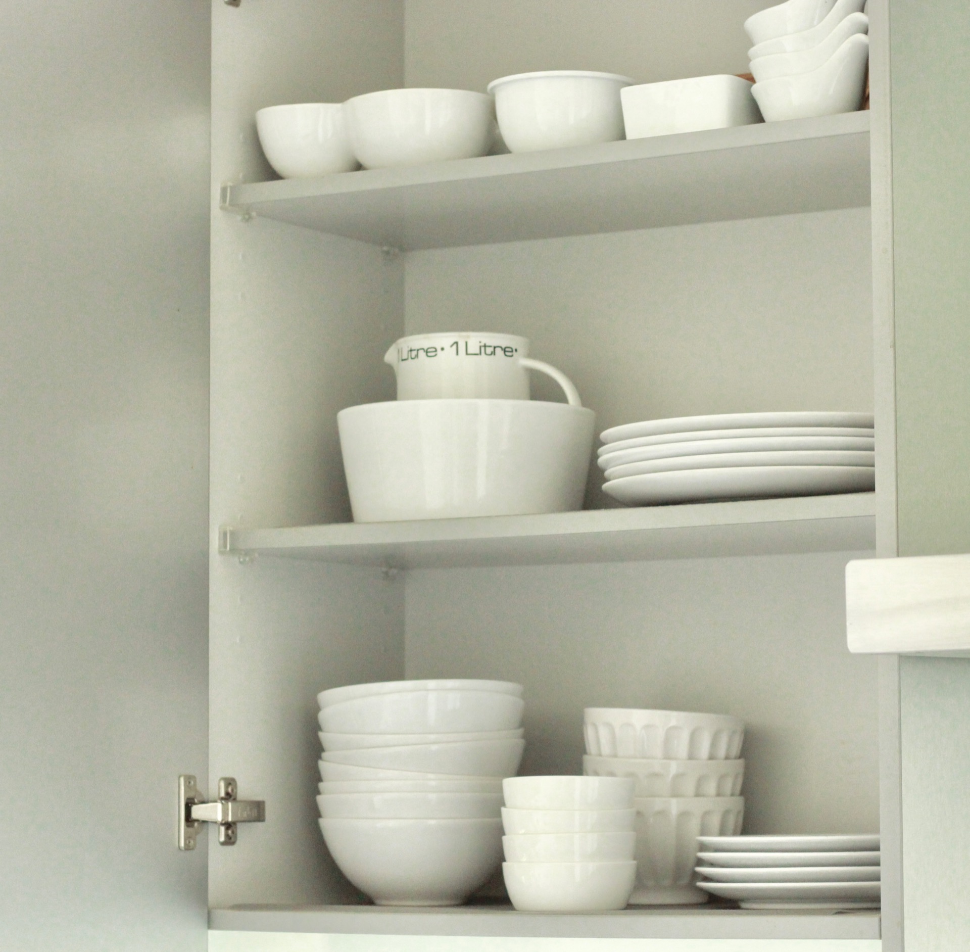 Com a loiça toda da mesma cor e arrumada por categorias, qualquer armário aberto parece saído de uma revista de decoração.Eu escolhi o branco porque combina com tudo e fica bem em qualquer ocasião.