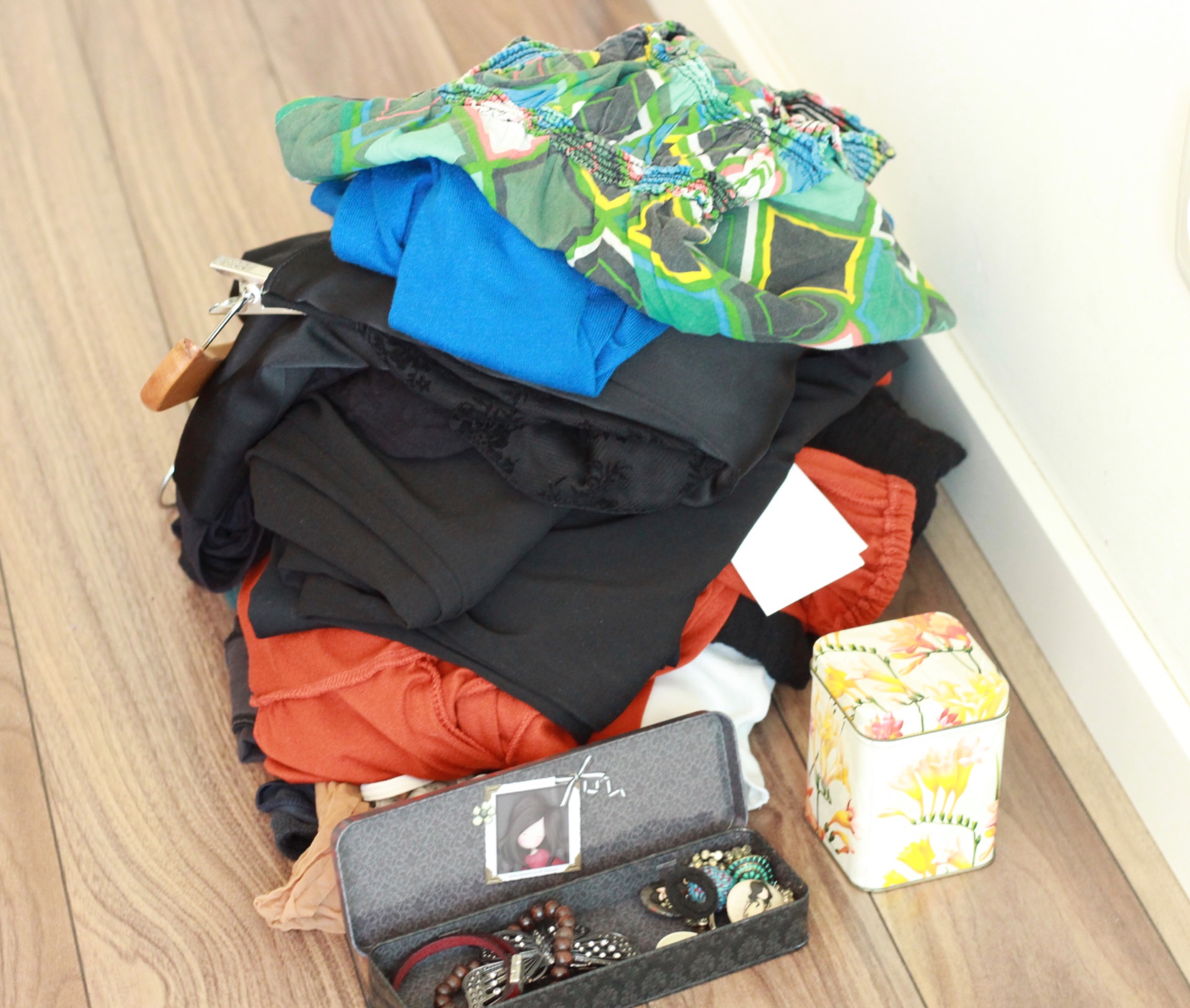 1º, tiro tudo do armário e disponho em cima da cama, como sugere a Marie Kondo;
